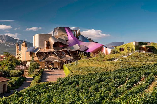 Το Marqués de Riscal είναι ένα από τα παλαιότερα και πιο ιστορικά οινοποιεία της Rioja, με ρίζες που φτάνουν στο 1858. Ξεχώρισε ως το πρώτο που εισήγαγε γαλλικές τεχνικές οινοποίησης στην περιοχή, ενώ στις αρχές του 20ού αιώνα έντυσε τα μπουκάλια του με χρυσό μεταλλικό δίχτυ για να εγγυηθεί την αυθεντικότητα και την προστασία από τις απομιμήσεις.