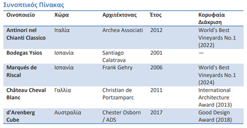 Αυτά τα πέντε οινοποιεία μας θυμίζουν πως το κρασί δεν ήταν ποτέ απλώς ένα ποτό. Είναι πολιτισμός, τέχνη και τοπίο μαζί και μερικές φορές, η αρχιτεκτονική που το στεγάζει αφηγείται μια ιστορία εξίσου συναρπαστική με αυτή μέσα στη φιάλη.